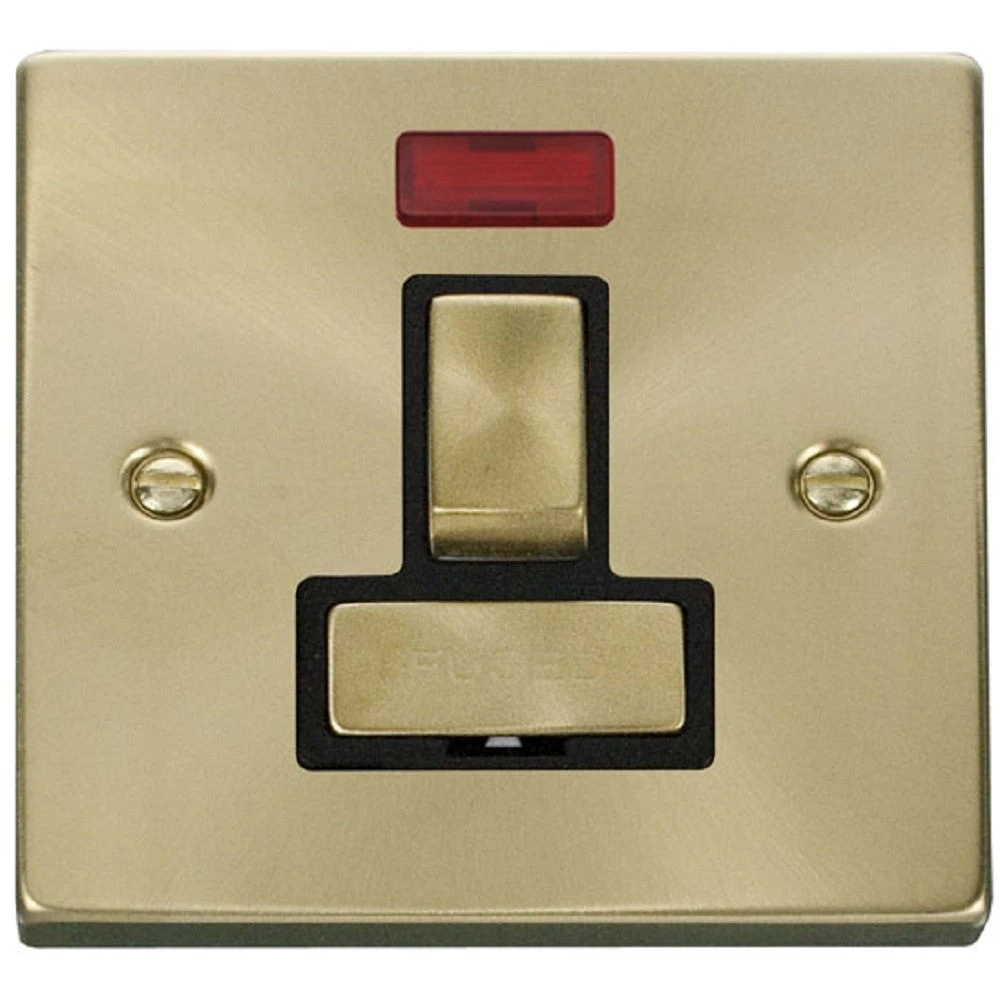 Click Deco Satin Brass 13A Switched Spur With Neon VPSB752BK