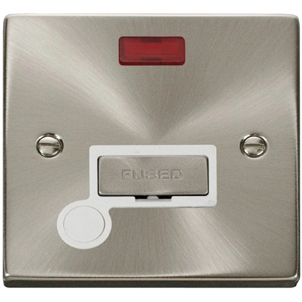 The VPSC553WH is a 13A Fused Connection Unit with Neon and Flex from the Click Deco range by Scolmore, finished in Satin Chrome. The Click Deco range has a distinctive raised plate, squared edge finish and is constructed with premium stainless steel for a long-lasting finish.