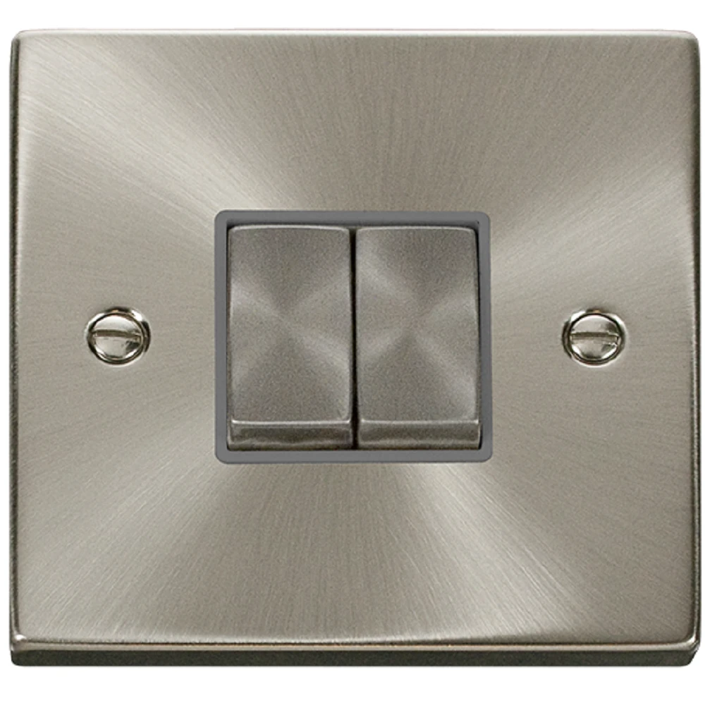 The VPSC412GY is a 2G Light Switch from the Click Deco range by Scolmore, finished in Satin Chrome. The Click Deco range has a distinctive raised plate, squared edge finish and is constructed with premium stainless steel for a long-lasting finish.