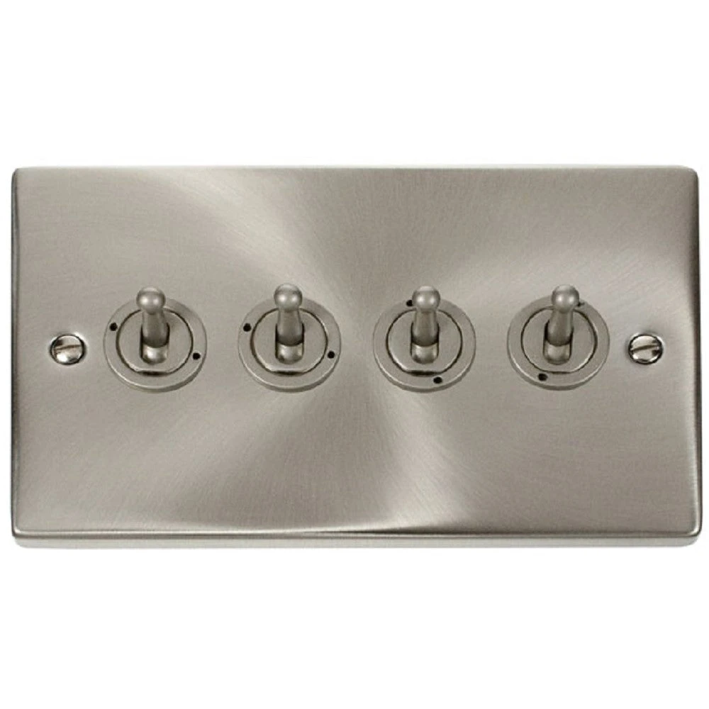 The VPSC424 is a 4G Toggle Switch from the Click Deco range by Scolmore, finished in Satin Chrome. The Click Deco range has a distinctive raised plate, squared edge finish and is constructed with premium stainless steel for a long-lasting finish.