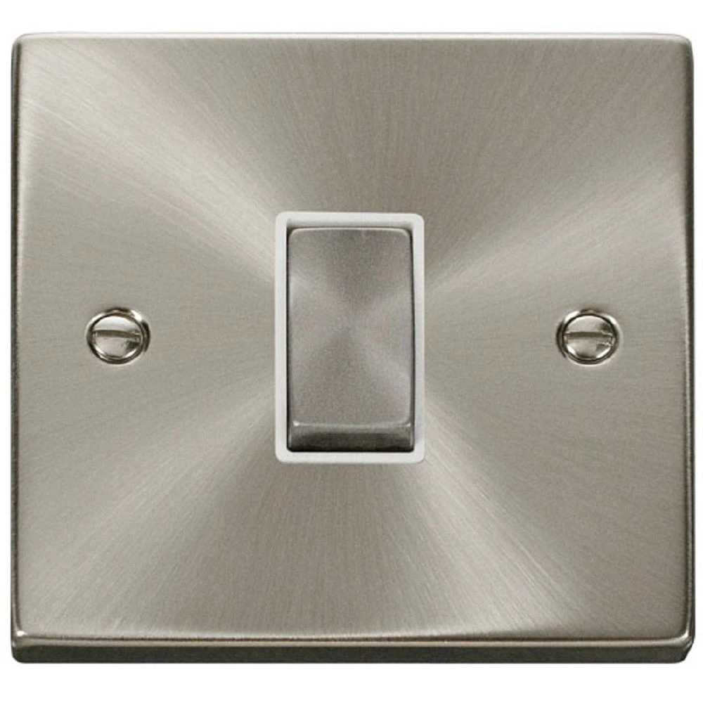 The VPSC425WH is a Intermediate Switch from the Click Deco range by Scolmore, finished in Satin Chrome. The Click Deco range has a distinctive raised plate, squared edge finish and is constructed with premium stainless steel for a long-lasting finish.