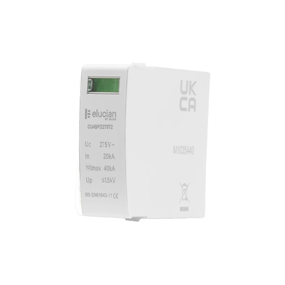 Increase the safety of your electrical systems with Elucian 3 Phase 275Uc 40Ka SPD Cartridge. This Type 2 (4 Pole) cartridge has a maximum continuous operating voltage of 275V~ and a nominal discharge current of 20kA. With a maximum discharge current of 40kA, this cartridge is designed for use with CU4SPD275T2. Trust in its reliable protection for your systems.