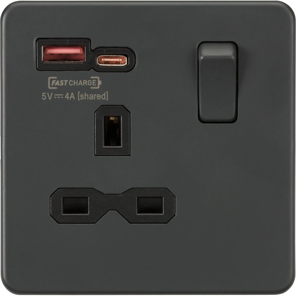 Knightsbridge Screwless Anthracite Single A+C USB Socket SFR9919AT