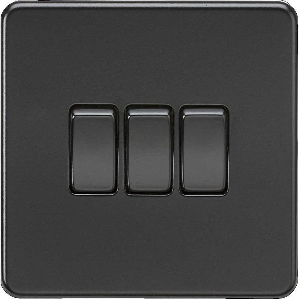 The SF4000MBB is a 3G light switch in Matt Black from ML Knightsbridge. The Matt Black Screwless range has a low profile plate with a 4.3mm projection with seamless black inserts. Constructed from a premium grade steel and premium grade components, Knightsbridge is a high quality brand.