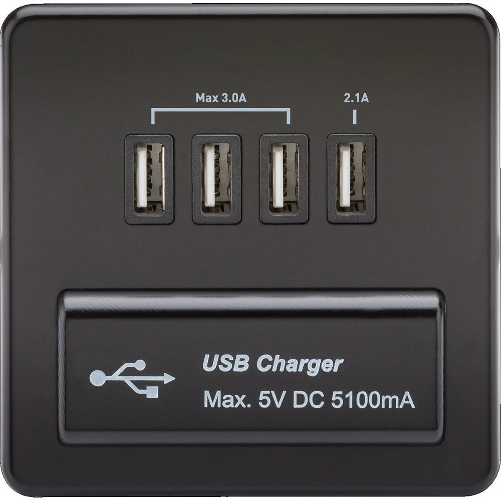 Knightsbridge Screwless Matt Black Quadruple USB Charger SFQUADMB