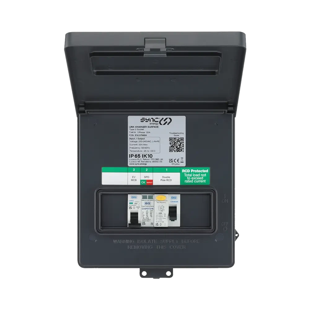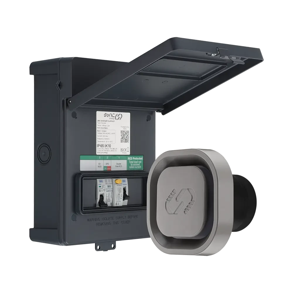 The Sync Energy surface mounted EV charger delivers up to 7.4kW charging power in a slim 37mm design. Easy to install without specialist tools, it includes built-in safety features like SPD, 40A MCB, and Type A RCD. Manage charging via the Sync Energy App with smart controls, plus choose between recessed or surface mounting. It supports auto solar charging to use excess solar power and includes tariff sense for real-time cost management. Its patent-approved design combines safety, efficiency, and convenience for your EV charging needs.