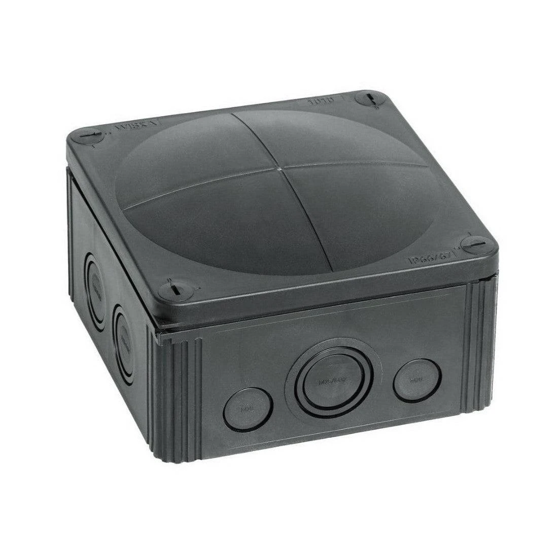 Adaptable PVC Weatherproof Box (enclosure) in Wiska Black. The Wiska boxes 10% more room inside, thanks to belled cover.