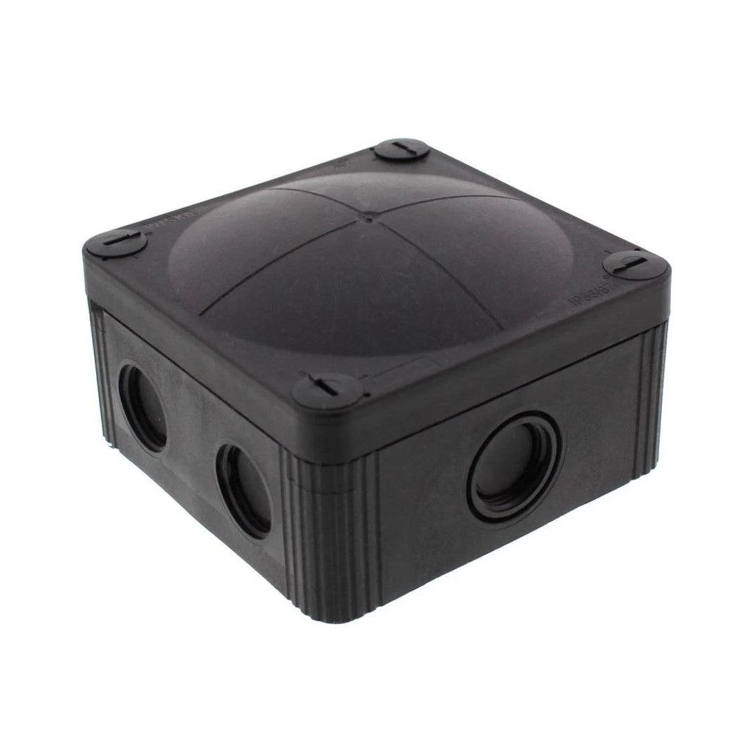 Adaptable PVC Weatherproof Box (enclosure) in Wiska Black. The Wiska boxes have 10% more room inside, thanks to bellied cover.